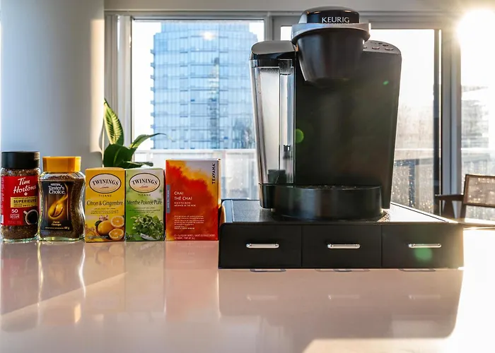 Take delight in an equipped kitchenette provided at this apartment and complete with a microwave, an electric kettle, and kitchenware for your convenience. Guests will find the café Lavazza Espression Cafe a 5-minute walk away. This property is easily accessible from Billy Bishop Toronto City airport, which is about 5 km away.
